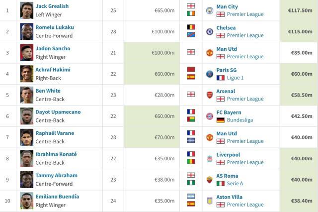 在球员个人身价方面,今年夏窗转会费前10的球员中有7名新东家是英超球队,而前20中有13名目的地是英超。转会费前3的格里利什、卢卡库和桑乔都是花落英超,第5的本·怀特也是来自英超,这都是转会费过5000万的交易。像水晶宫、西汉姆、莱斯特、利兹联这些中下游球队,他们都是真金白银地在砸钱,这几支球队的卖人收入都不及千万,不像维拉那样卖人换钱花(其实维拉也不一定非得靠卖人)。