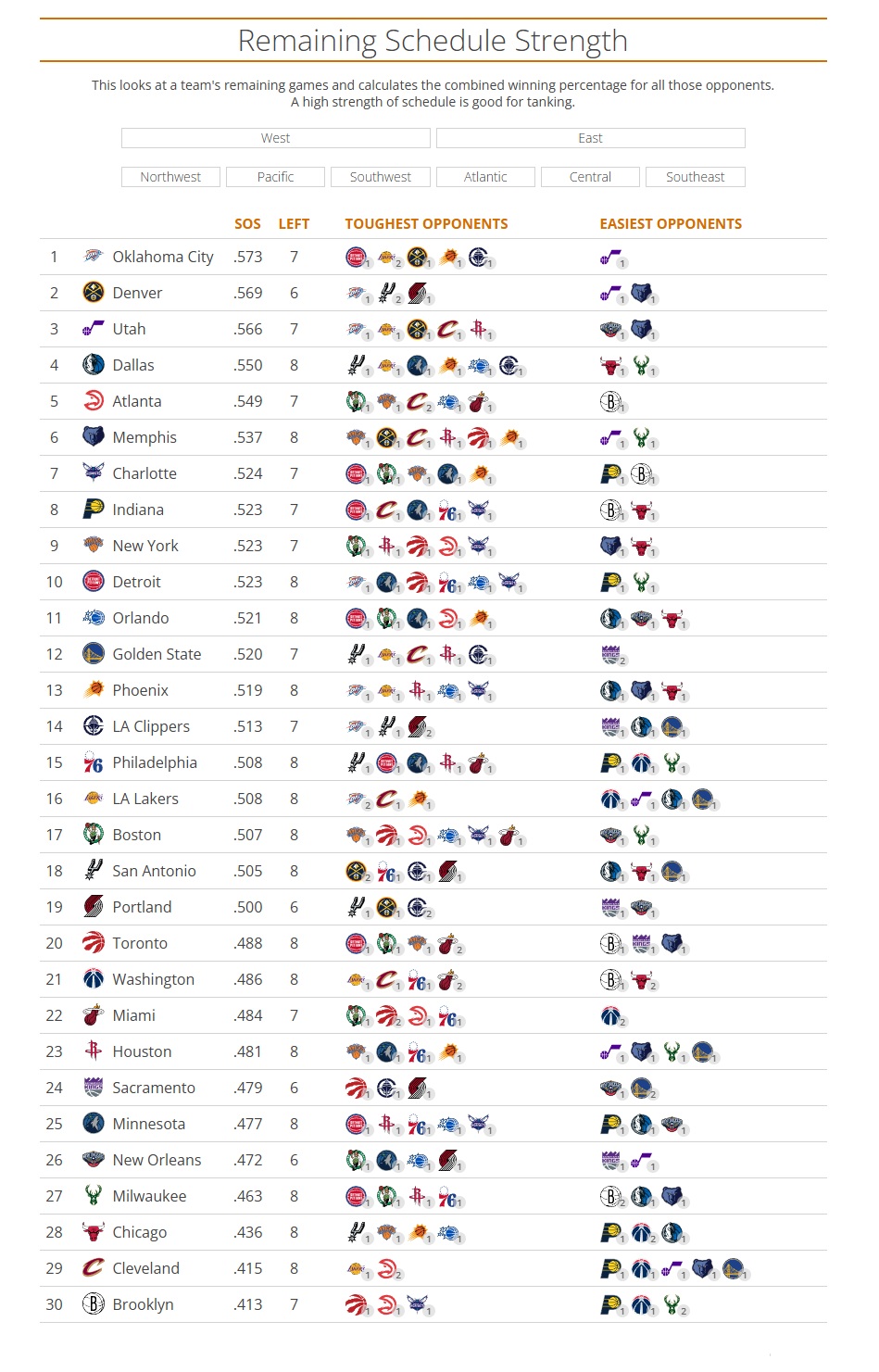 排名越高剩余赛程难度越高,排名越低剩余赛程难度越低!从左到右依次是:SOS:剩余对手的平均胜率;LEFT:剩余场数;最难打的对手罗列;最好打的对手罗列。...